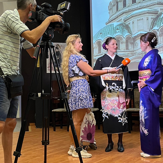 9月1日、日本クラブ「キズナ」(ヴァルナ市所在)及びソフィア大学共催の「着物に関するレクチャー及び着物ファッションショー」が、ソフィア大学本部大講堂で開催されました。兵庫県から計5名の着付け技能士が来訪し、着物の変遷と歴史に関するレクチャーのほか、着付け体験やブルガリアの方々も加わったファッションショーが行われ、立ち見が出るにぎわいを見せました。その後、同様のイベントがヴァルナ市でも行われ、両会場合わせて約600名が来場しました。本件は当地のメディアにも取り上げられました。